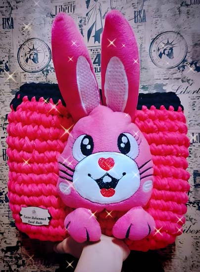 شنطة خمراء كروشيه بحزام جلدي