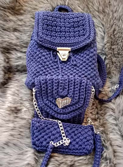 شنطه كبيره ومقلمه مع شنطه صغيره بخيط مكرميه مصري وسلسله وقفل وجنش وحلقات واكسسوار